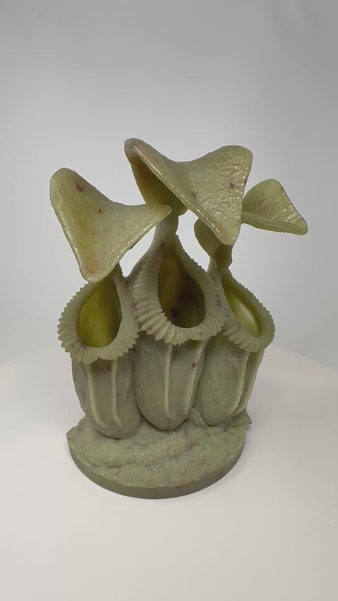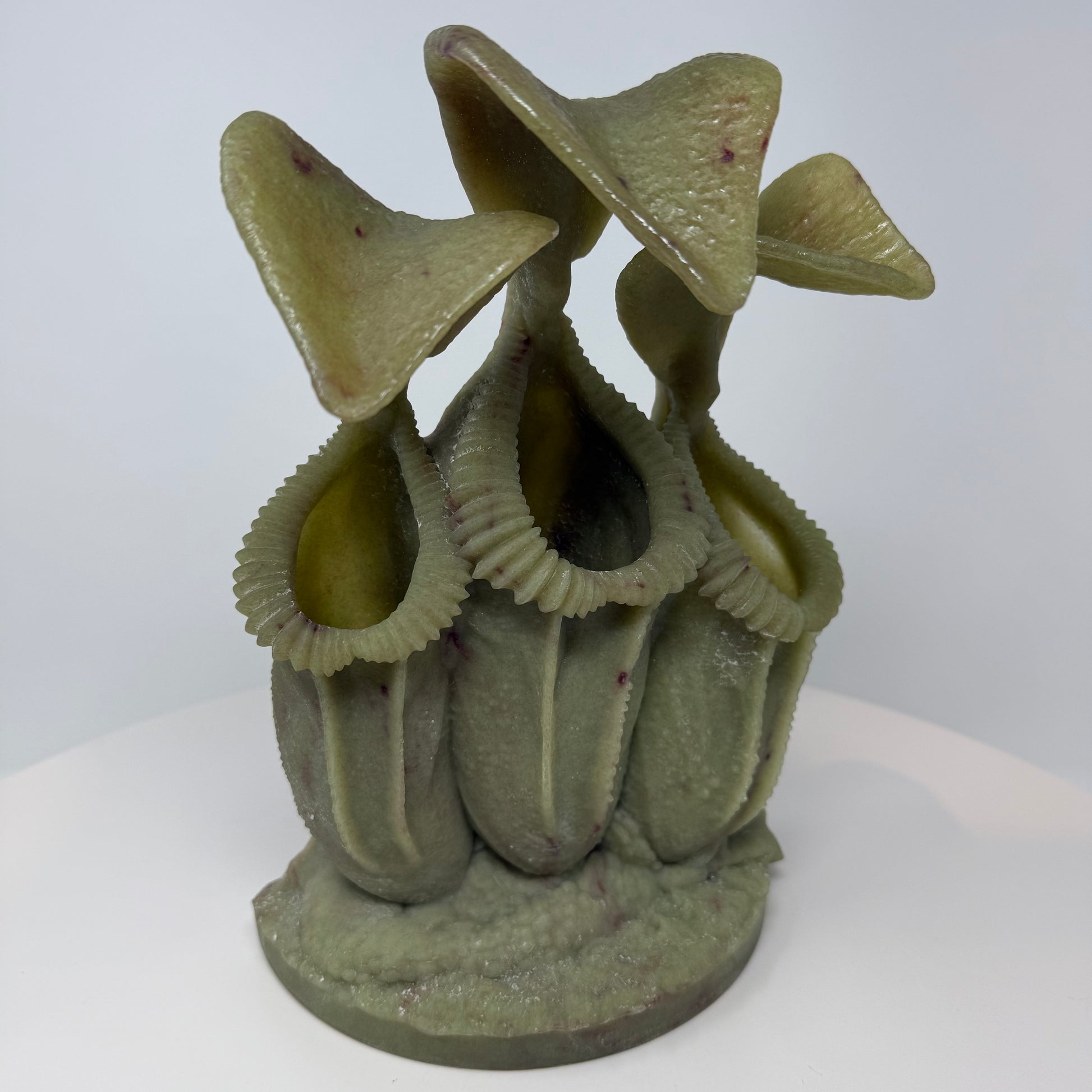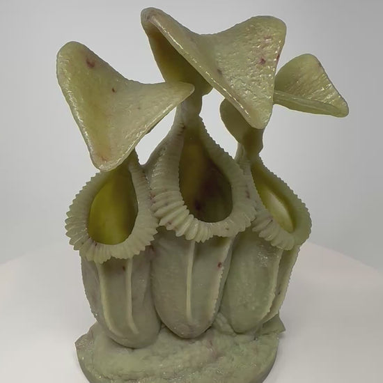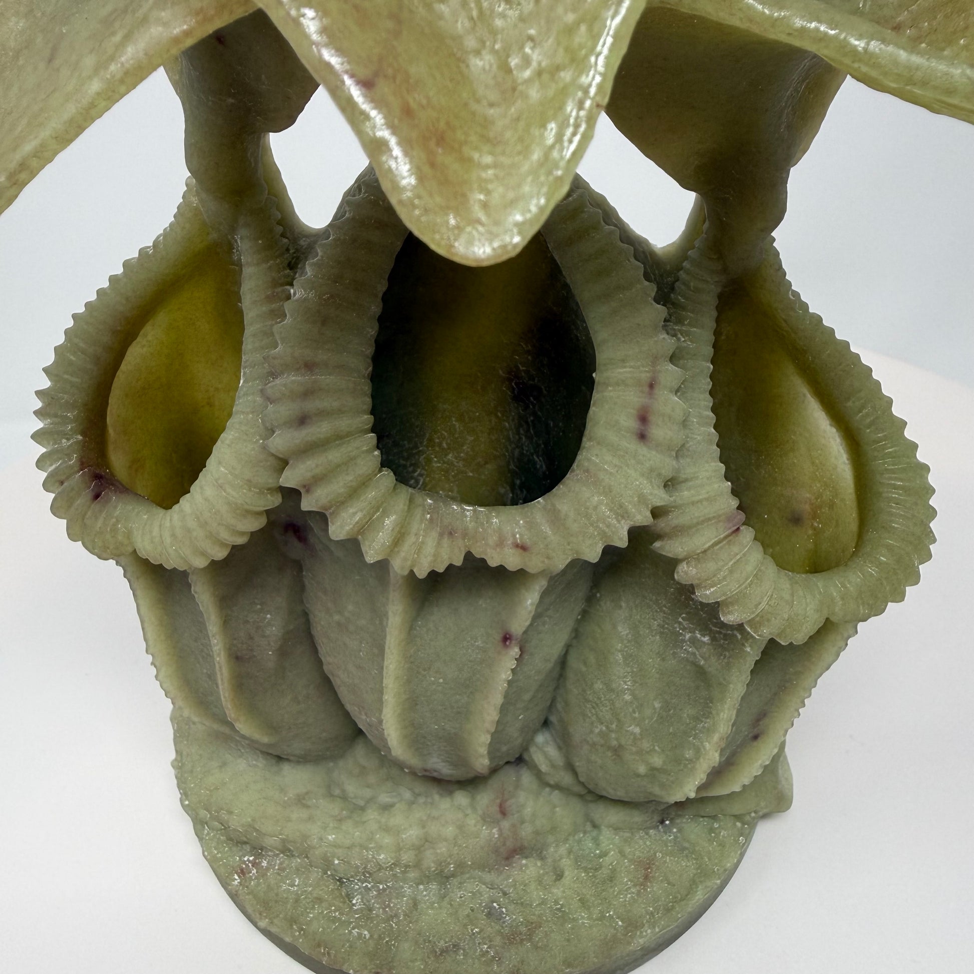 Pitcher plants are found globally in peat swamps and tropical forests. Known trapping insects and slowly digesting them within its bulbous pitcher. Our replicas are made from strong food safe and impact resistant materials. This model was 3D rendered to achieve proper design and thickness to hold up to daily use. These are intrinsically tinted to keep vibrant colors after rigorous use and cleanings. Roughly 10 1/2 inches tall and 6 1/2 inches wide. The food compartment opening is roughly 1 1/2 inches wide by 4 inches deep. As each enrichment is hand cast and tinted, color may vary slightly.